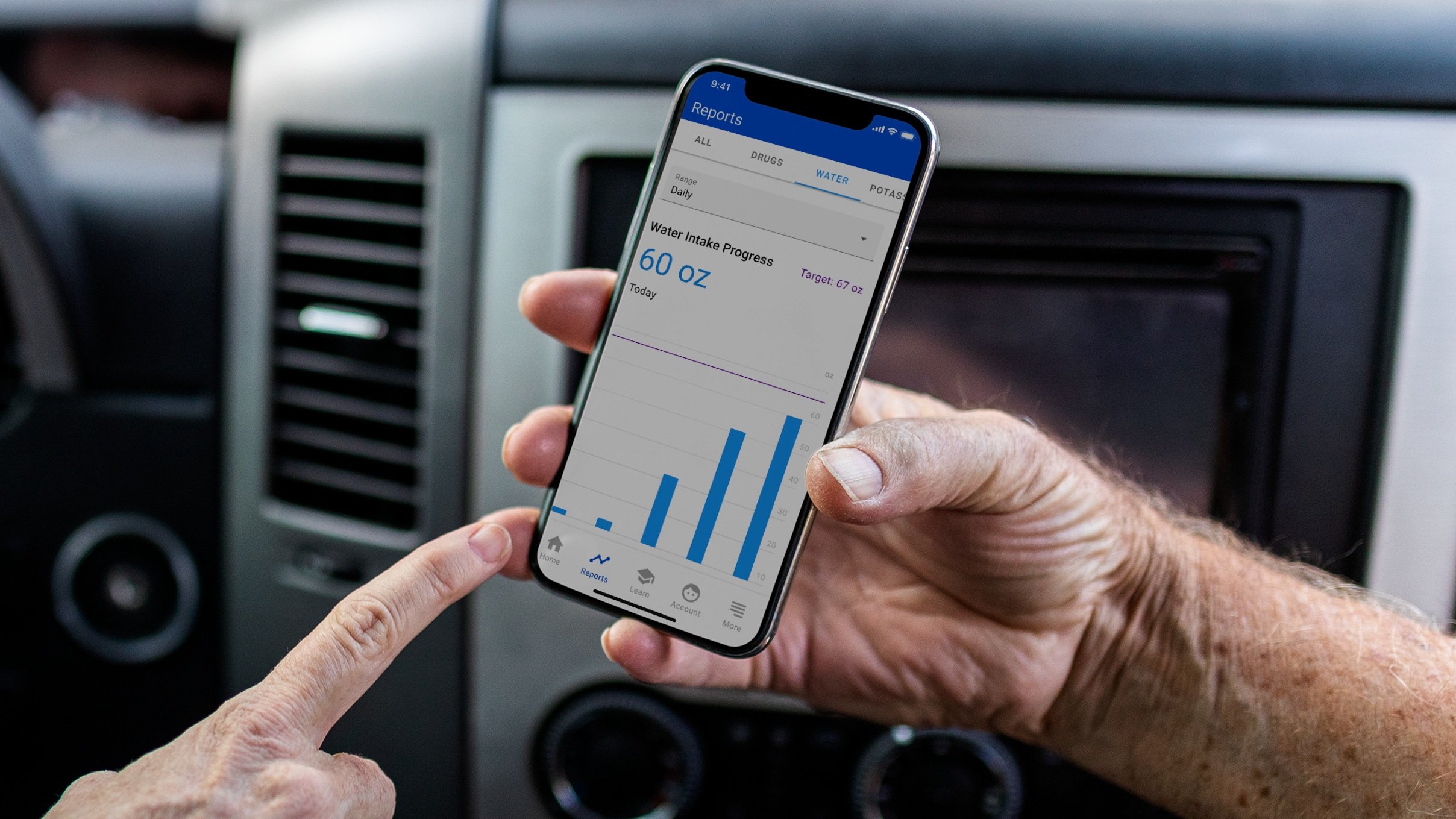 Aside from manually entering water intake to track fluids, patients can connect a smart water bottle to the companion app, removing the burden of remembering to track when, and how much water they drank.